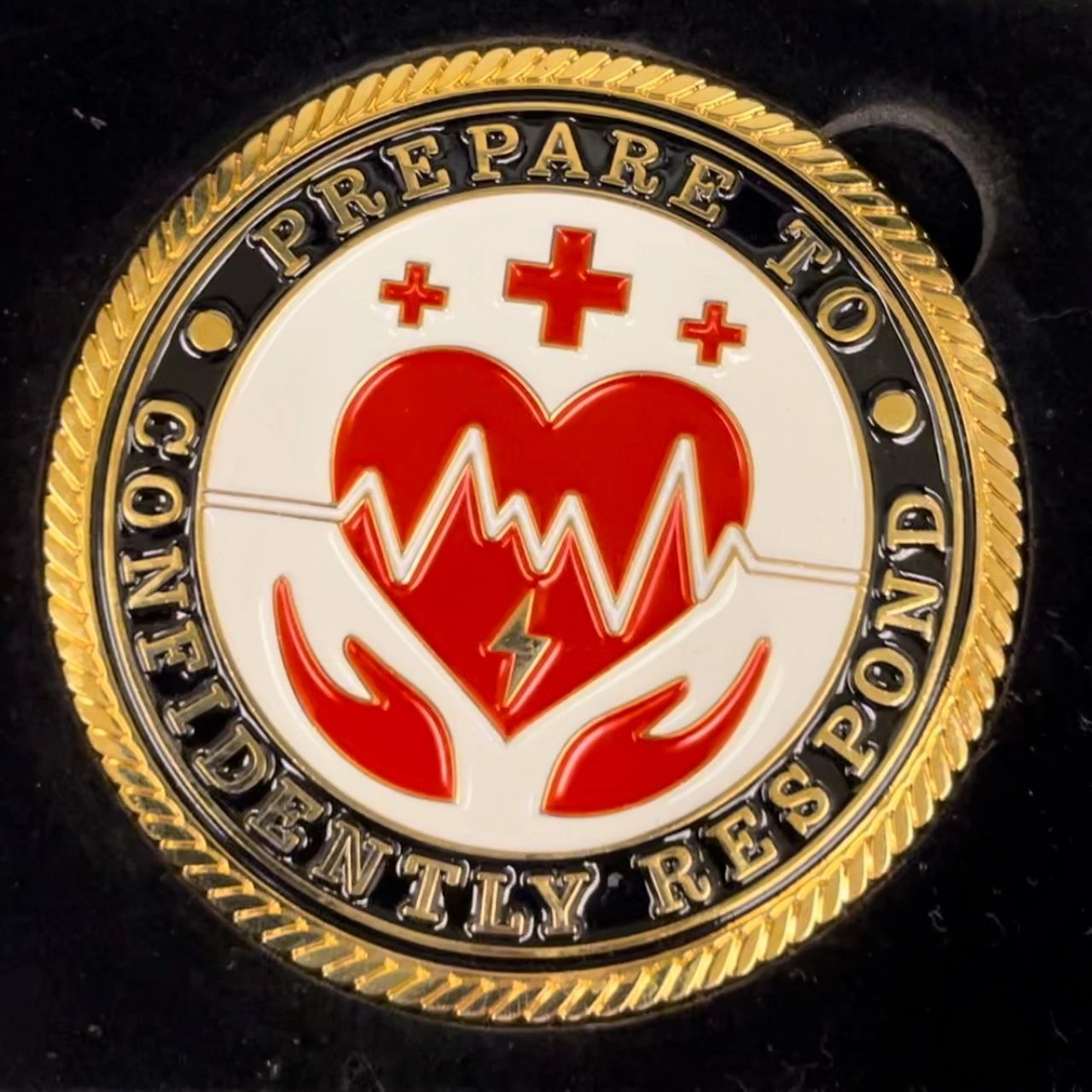 The HDTS Prepared to Confidently Respond Award is meant to recognize individuals or groups who used life saving measures, including CPR and or Narcan, to save a life. The HDTS Challenge Coin holds special significance, featuring hands taking hold of a heart on the back. This powerful imagery signifies the warmth and compassion. It represents the lives you've touched, and the profound impact of responding with care and confidence. This coin is not just an award; its a symbol of a life saved.